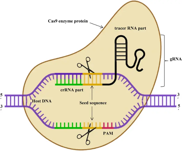 Guide RNA (gRNA): A short RNA sequence designed to match the target DNA.