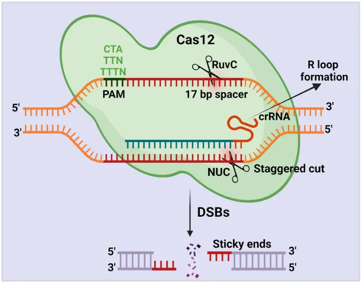 CRISPR-Cas12: Cuts single-stranded DNA; useful in diagnostics.